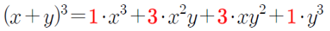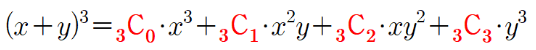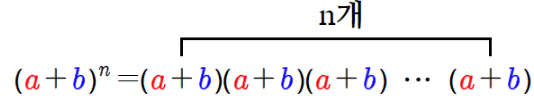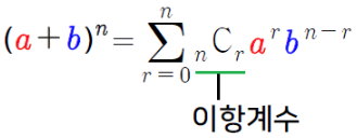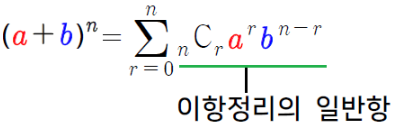 이항. 즉, 두 항의 대수합의 거듭제곱으로 전개하는 방법을 일반적인 형태로 나타내어 주는 정리입니다.