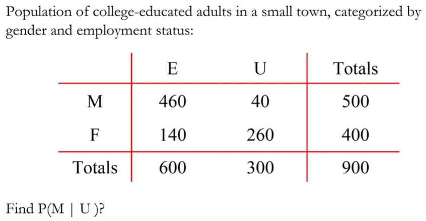예제) unemploy인 사람(U)이 남자(M)일 확률은?