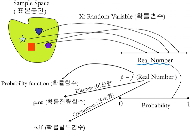 확률변수(random variable)로 부터 나온 real number를 확률로 대응하는 함수