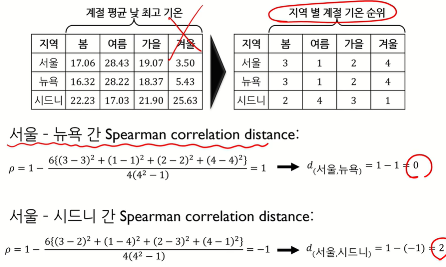 Rank data의 거리 계산 가능