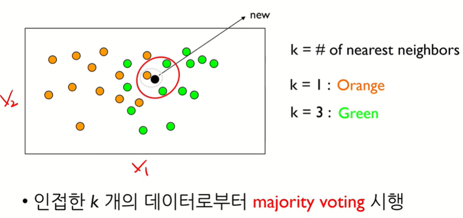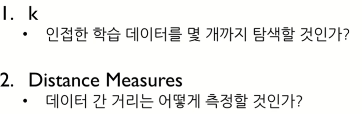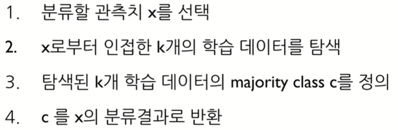 Instance based learning : 별도의 모델생성없이 인접데이터를 분류,예측함