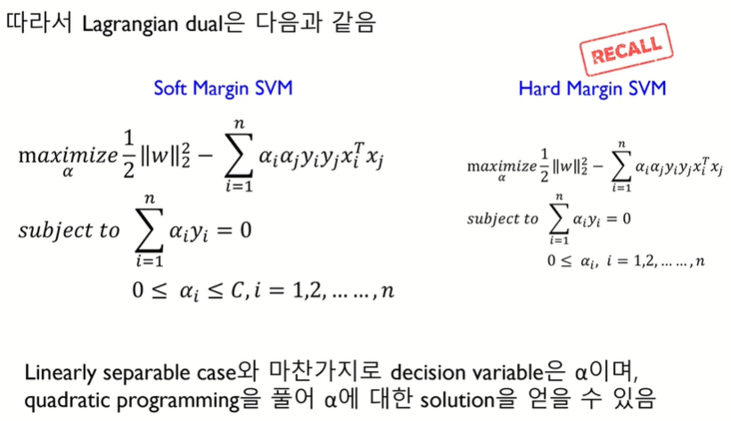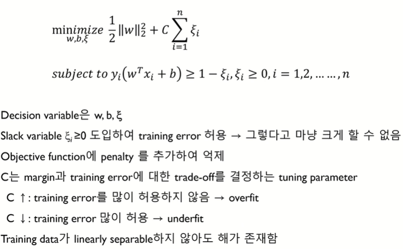 Soft Margin SVM : 선형으로 분리할 수 없는 SVM , Linearly Nonseparable case, 약간의 에러를 허용